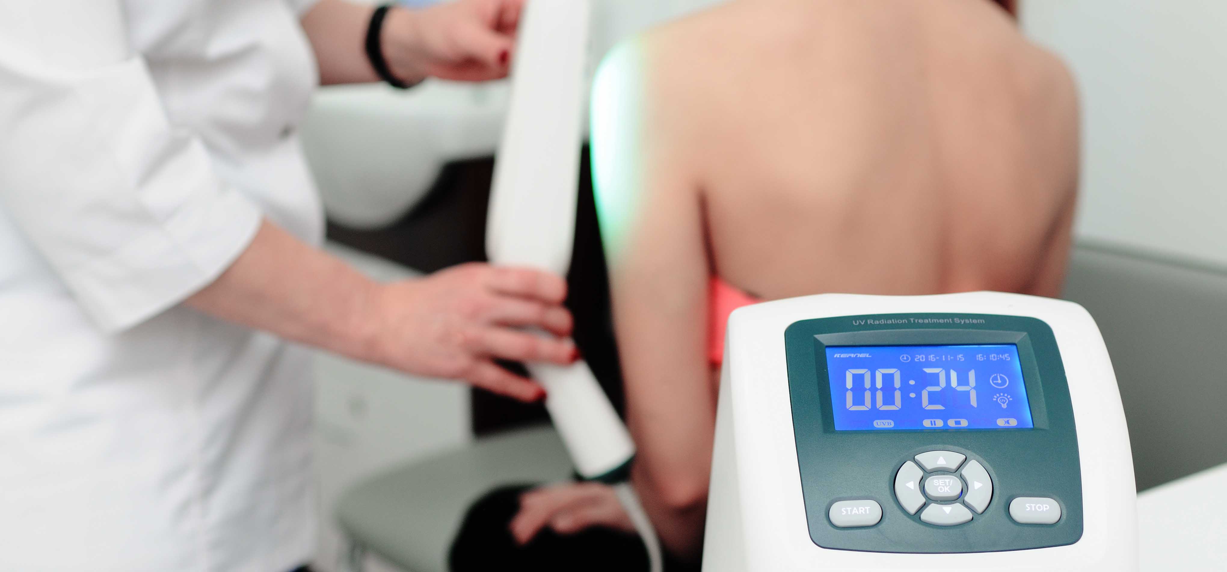 En el Campus Hospitalario Virgen del Mar disponemos de unidades especializadas en fototerapia con luz ultravioleta B (UVB) de banda estrecha, una de las técnicas más eficaces y seguras para el control de la psoriasis. Esta tecnología actúa directamente sobre las lesiones cutáneas, reduciendo la inflamación, aliviando el picor y frenando la producción acelerada de células de la piel. Se trata de un procedimiento ambulatorio, no invasivo y bien tolerado, ideal para pacientes que no han respondido adecuadamente a tratamientos tópicos.
